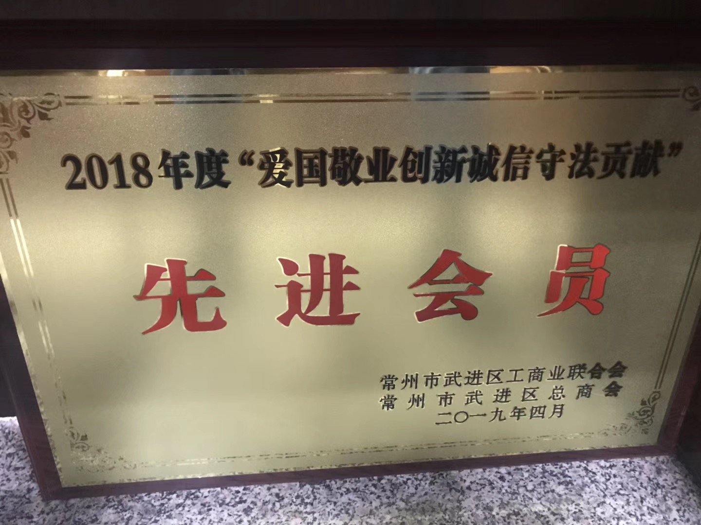 喜訊!我司獲評2018年度“愛國敬業(yè)創(chuàng)新誠信守法貢獻”先進會員